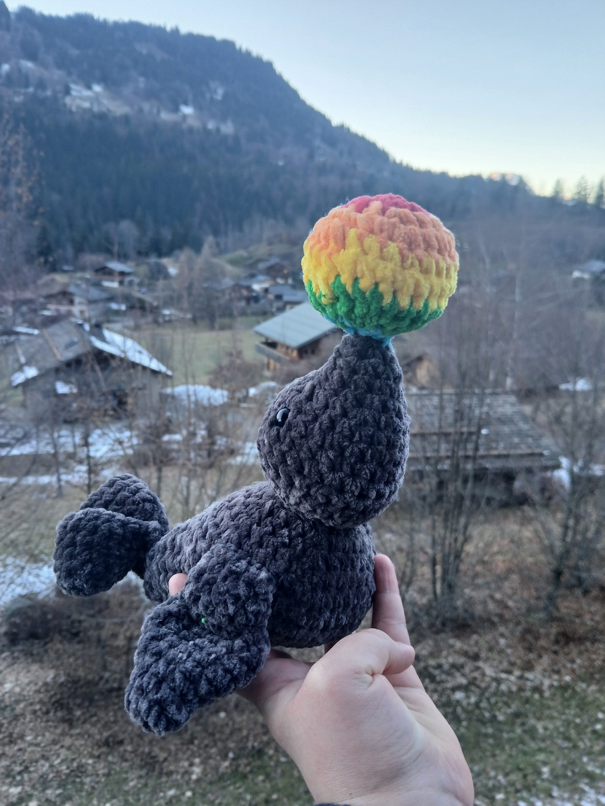 Salut ! Je suis Arc-en-Ciel 🌈, très joyeuse et je ne quitte jamais mon ballon ! Adopte-moi, je serai un super compagnon.
